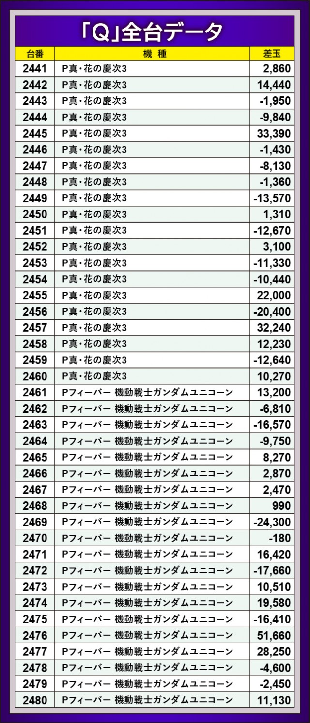 老若男女問わず愛される『Pスーパー海物語 IN 沖縄5』では、各所で万発OVERが発生していた。3~4万発OVERが多発しており、島はハイビスカスフラッシュの心地良い音が鳴り響いていたことだろう。また『P真・花の慶次3』『Pフィーバー 機動戦士ガンダムユニコーン』も同様に2476番台+51,660玉という突出した記録が生まれ、多くのファンが有意義な時間を過ごしていたに違いない。
