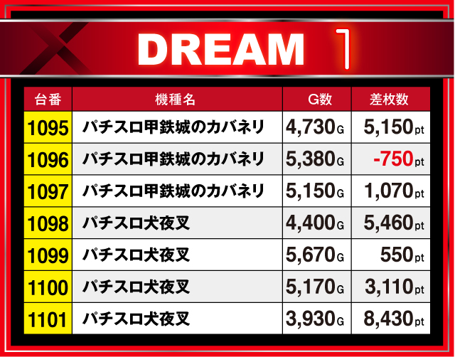 ナ:『パチスロ甲鉄城のカバネリ』と『パチスロ犬夜叉』が機種またぎで結果が出ており6/7でプラス。5千枚〜8千枚クラスも3/7で飛び出していましたね。