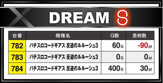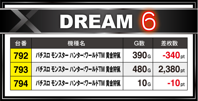 ナ:『パチスロ モンスター ハンター:ワールドTM 黄金狩猟』・『チバリヨ-30』・『パチスロコードギアス 反逆のルルーシュ3』の3台です。回転数が足りていませんが、ほとんどが定期的に登場する機種たちです。稼働が伸びればもっと結果が出たんじゃないかなぁと思い、あえて注目しました。