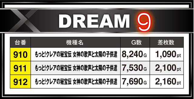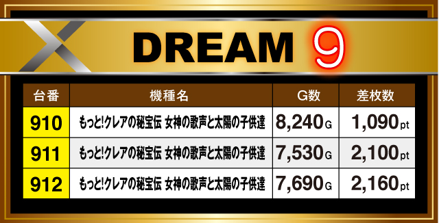 ナ:『もっと!クレアの秘宝伝 女神の歌声と太陽の子供達』です! 実戦の最後に打って挙動も良好でしたし、皆さんの反応を見る限り全台良かったんだと思えました。ただ、クレアに限らず新台というくくりですね。毎回新台は目が止まりますし、今後も注目したいと思いました。
