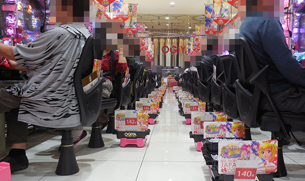 「ミリオンゴッド-神々の凱旋-」や「パチスロラブ嬢」といった機種にも、しあわせそうなプレイヤーを確認。