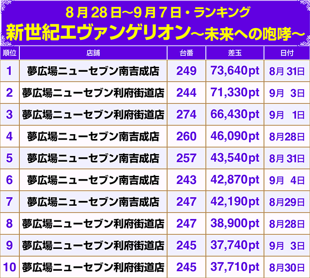 『新世紀エヴァンゲリオン~未来への咆哮~』は2台が+70,000ptオーバー!!