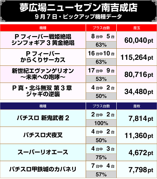 『Pフィーバーからくりサーカス』も好評となっており、トータルで+115,264ptを記録した。