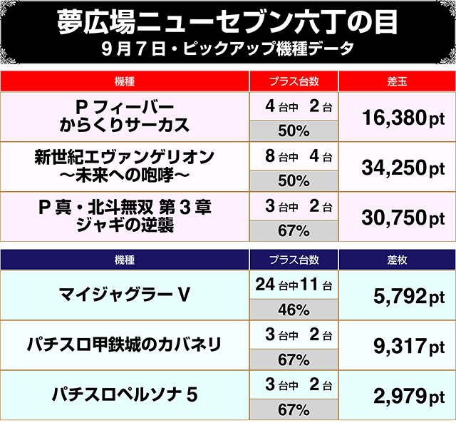 多数の新機種が仲間入りした8月28日から9月7日までの、夢広場ニューセブングループの11日間!!