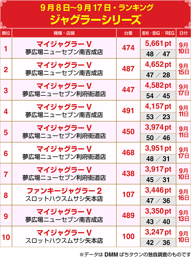8位に食い込んだ『ファンキージャグラー2』も+3,446ptをマーク。