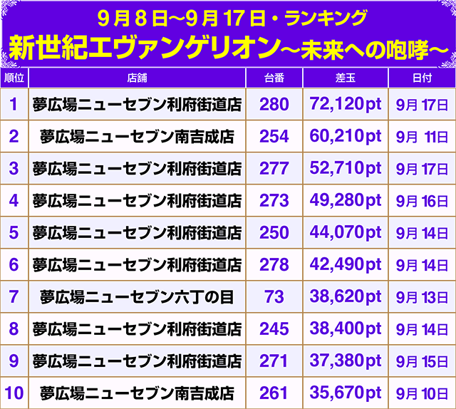 『新世紀エヴァンゲリオン~未来への咆哮~』のトップは+72,120pt!!