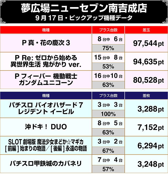 設置台数の多い『Pフィーバー 機動戦士ガンダムユニコーン』も半数以上がプラスで、+80,528ptを記録した。