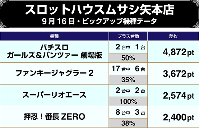 【9/16スロットハウスムサシ矢本店をピックアップ】