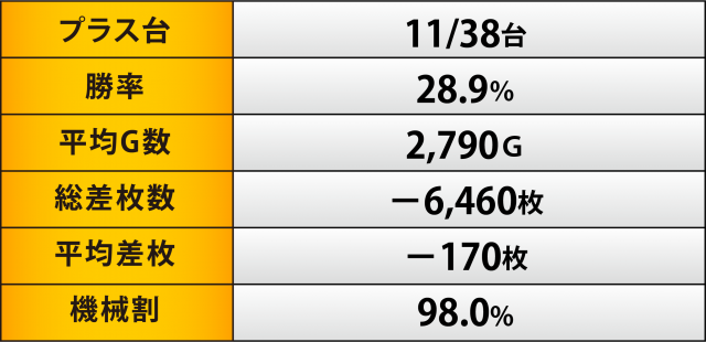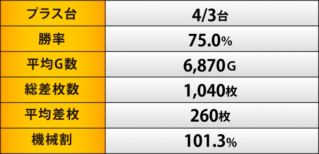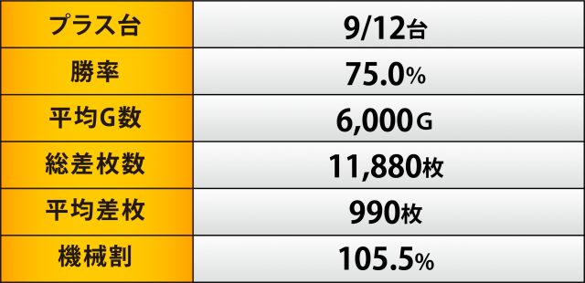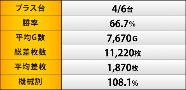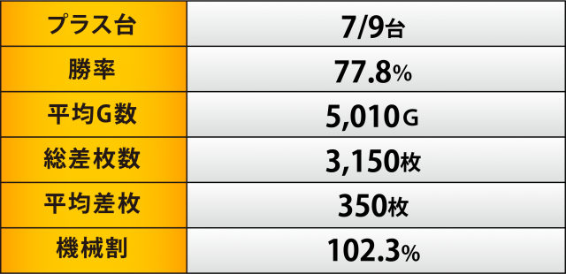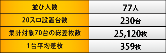 過去2回“新しい月のはじまり”に注目する「はじまる!」取材が繰り広げられてきた「マルハン新発田店」。今回は3ヵ月ぶりの実施と相成った。パチスロの取材対象では総差枚最高値を記録したのが初回となる前々回となっている。是非とも更新を目指したいところだが、気になる結果は…上表の通りプラスを達成、前回を若干上回ることに成功! 以下からはパチスロ・パチンコそれぞれを当日の詳細出玉データをチェックしながら、各機種の状況を解説していこう。