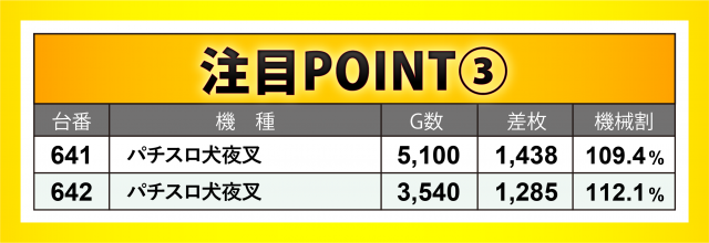 『パチスロ犬夜叉』は設置2台がどちらともプラス、両者共に差枚数+1千枚台を記録。