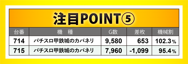 2台の『パチスロ甲鉄城のカバネリ』は1台のみプラスで、差枚数にはもうひと伸びが欲しかった。