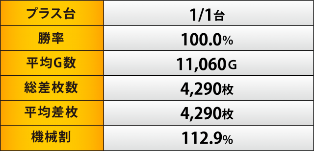 設置1台の『パチスロペルソナ5』は稼働1万1千Gを突破、+4千3百枚弱の嬉しい結果に。