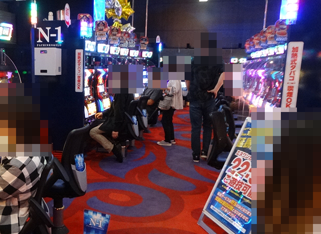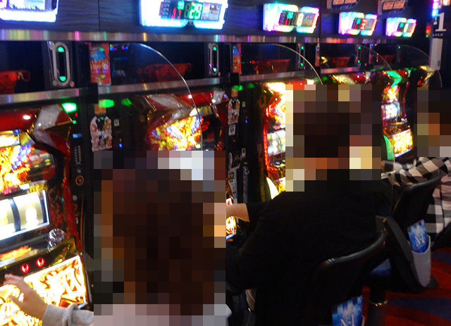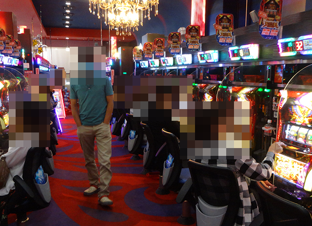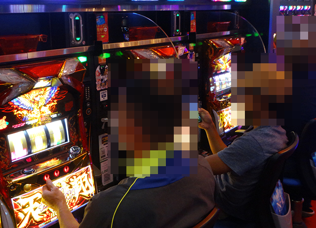 取材時の「ハナハナホウオウ~天翔~-30」には10名が座っており、うれしそうに遊技をおこなう姿が多数。