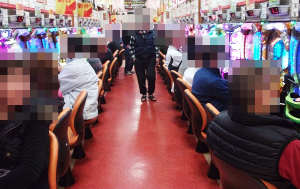 4円パチンコでは海物語シリーズが大盛況となっており、充実した表情を浮かべるプレイヤーが多数。