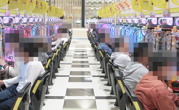 開店後は、遊技を楽しみにしていた様子のパチンコ・パチスロファンによって活気づいていた。