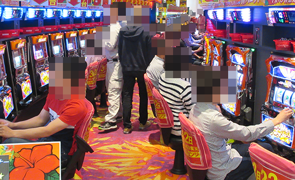 20円パチスロでは「バジリスク~甲賀忍法帖~絆」の人気が高く、なかには満面の笑みを浮かべての遊技となっているプレイヤーもいた。