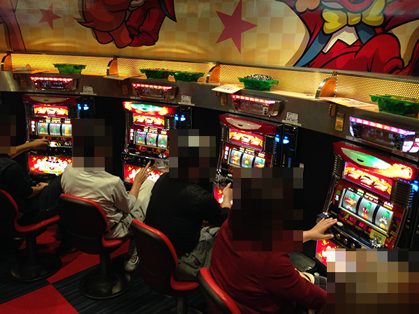 14時を過ぎた頃になると、パチスロでは定番機種であるジャグラーシリーズが高稼働と盛況。