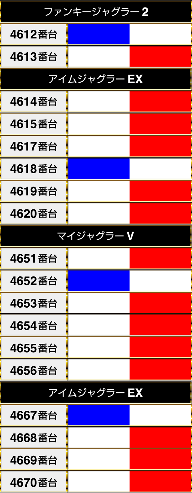 『ファンキージャグラー2』と『アイムジャグラーEX』にも空き台は少なく、たくさんの笑顔を目にしている。