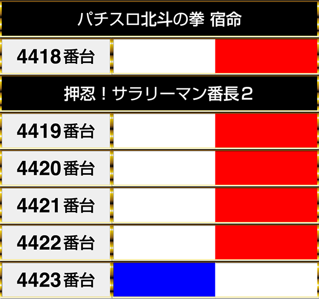 『パチスロ北斗の拳 宿命』の1台は『押忍!サラリーマン番長2』の4台と並んでプラスpt!!
