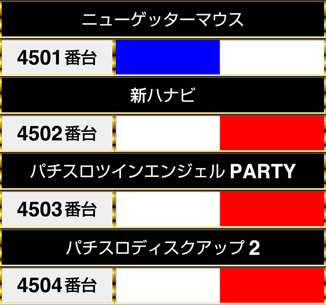 3機種が2つのシマにわかれて設置されており、最終的には4箇所にプラスptが並んだ。