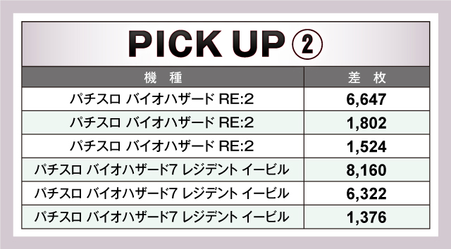 優秀台を見てみると、+8,160枚を記録した『パチスロ バイオハザード7レジデント イービル』、+6,647枚の『パチスロ バイオハザード RE:2』と、『バイオ』シリーズがともに活躍。あらためてそのポテンシャルを発揮した。それに続いたのが、+6,559枚の新鋭『パチスロ BOØWY』、+6,557枚の『パチスロ アクエリオン ALL STARS』だった。以下、+5,915枚の『パチスロこの素晴らしい世界に祝福を!』、+5,795枚の『押忍!番長ZERO』などが盛り上がりを見せていた。