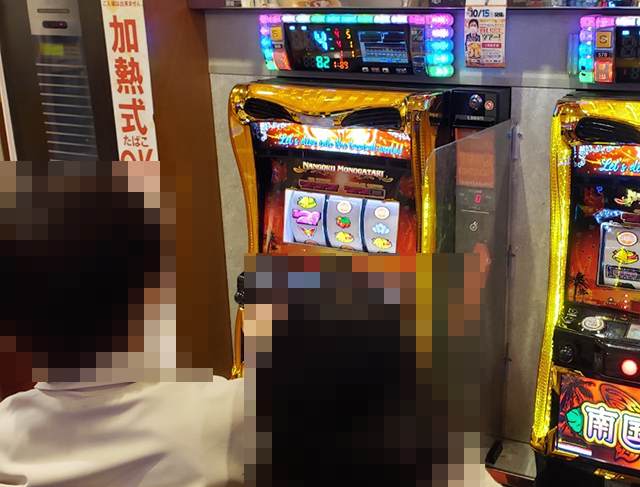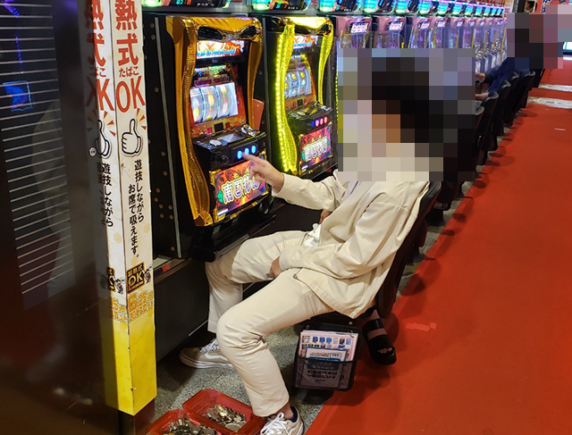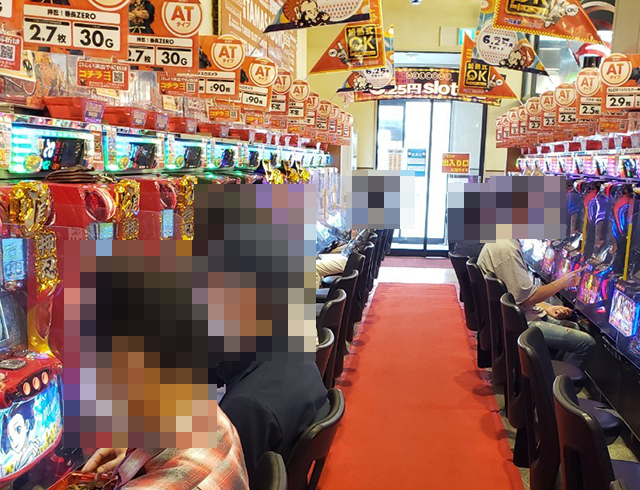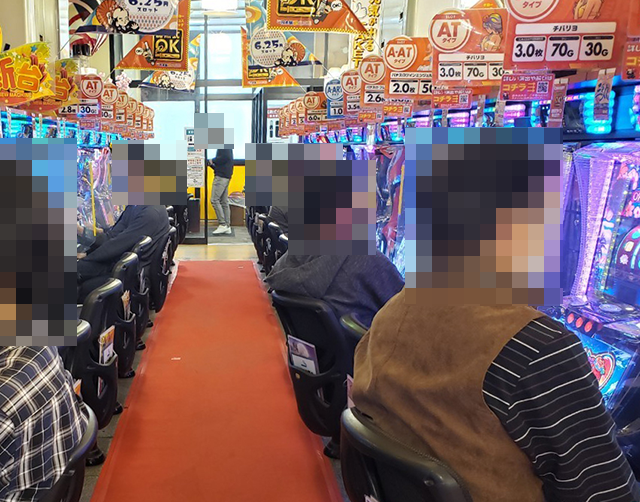 パチスロのシマをまわり、何重ものマルをつけたくなるようなシーンに注目をした。