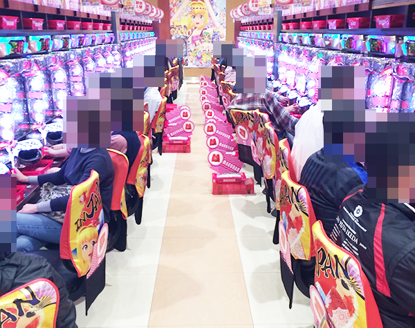 ホールの様子をみると、パチンコとパチスロのどちらにも明るい笑顔が広がっており、大きくにぎわっていた。