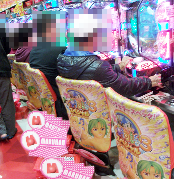 15時を過ぎた頃の4円パチンコでは、新台の「ぱちんこCR真・北斗無双」が人気。狙い通りといった表情のプレイヤーもおり、満足度もかなり高いように感じられた。