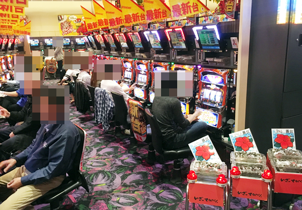 ホール内の様子をみてみると、パチンコ・パチスロコーナーはともにたくさんのプレイヤーでにぎわっており、楽しい雰囲気となっていた。