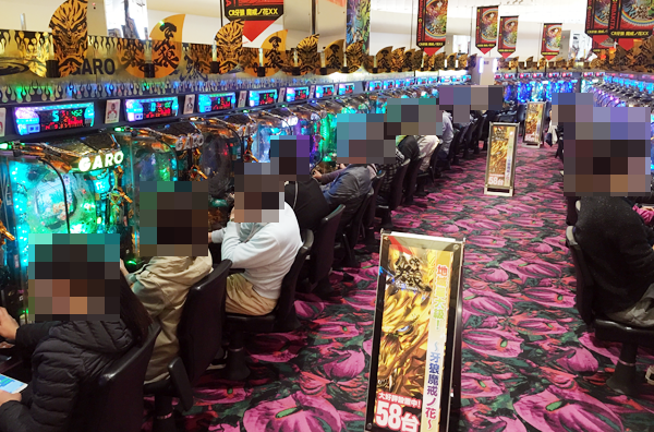 海物語シリーズや「CR牙狼 魔戒ノ花」も大人気。各シマには機種の魅力を引き出しているプレイヤーが目立っていた印象だ。