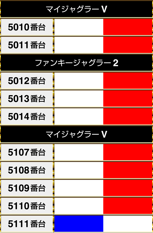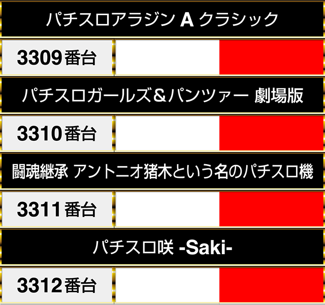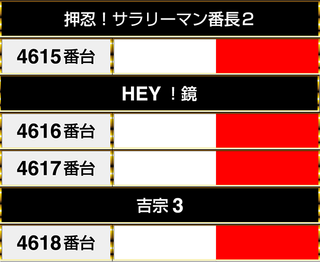 3機種以上が並んでプラスptとなる場所もあり、3309番台から3312番台までと4615番台から4618番台までにプラスptが連なった。