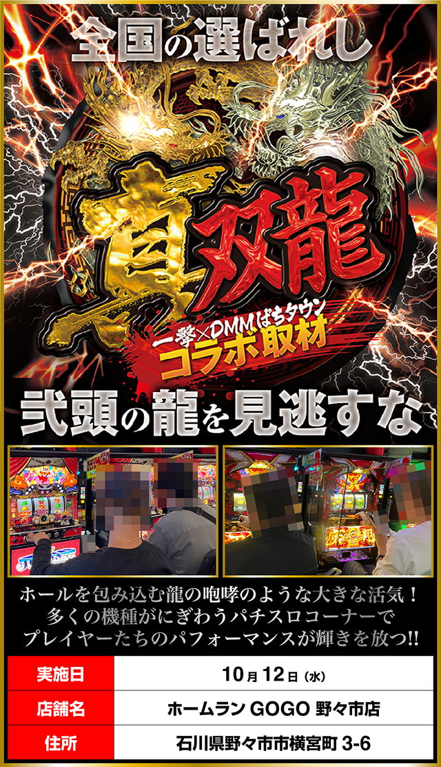 「ホームランGOGO 野々市店」を舞台に「真双龍」を実施。