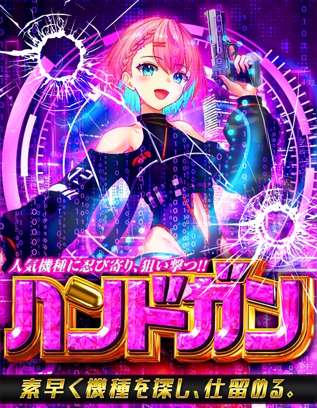 笑顔が広がるホールを舞台に、ハンドガンが注目機種を狙い打つ!!