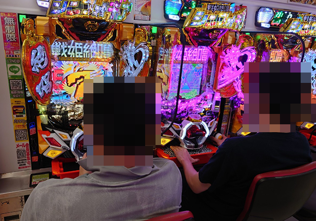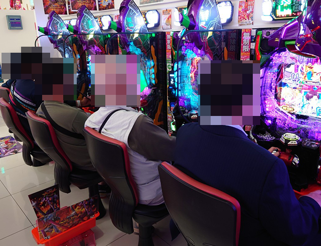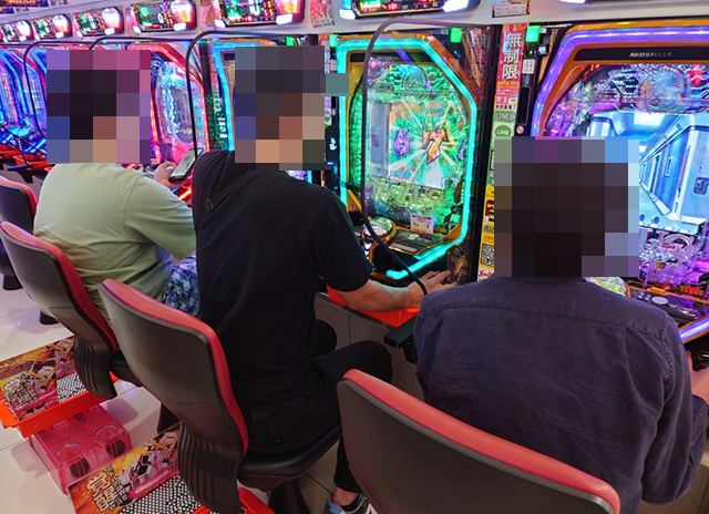 取材時は7割が稼働しており、どのプレイヤーも軽やかに遊技を堪能中。テンポよく回転数を増やしたり、スピーディな展開で大当りを獲得したりと、さまざまな場面がみられた。