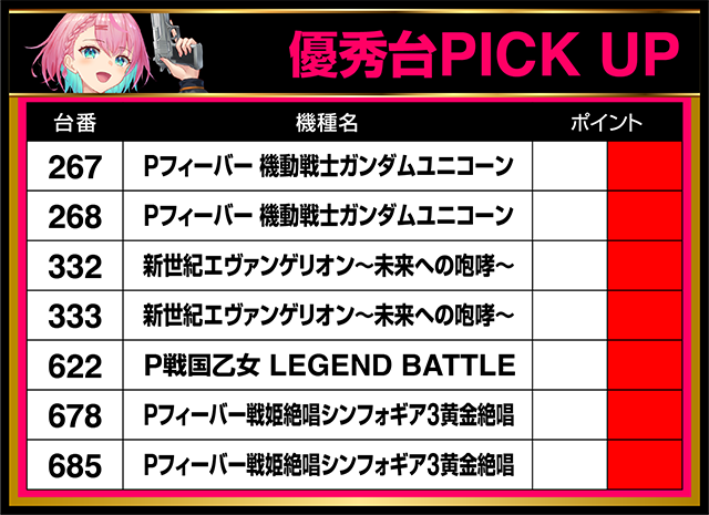 622番台の「P戦国乙女 LEGEND BATTLE」もプラスを記録。