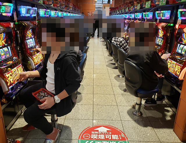 15時過ぎに店内をみると、パチンコとパチスロの両方でプレイヤーが活躍。笑みを浮かべていることからも、有意義な時間を過ごしていることがうかがえた。