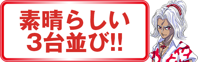 「マイジャグラーV」や「アイムジャグラーEX」でも、華やかな場面に遭遇! プレイヤーの活躍によって、美しい3台並びが作り上げられているように感じたぞ。