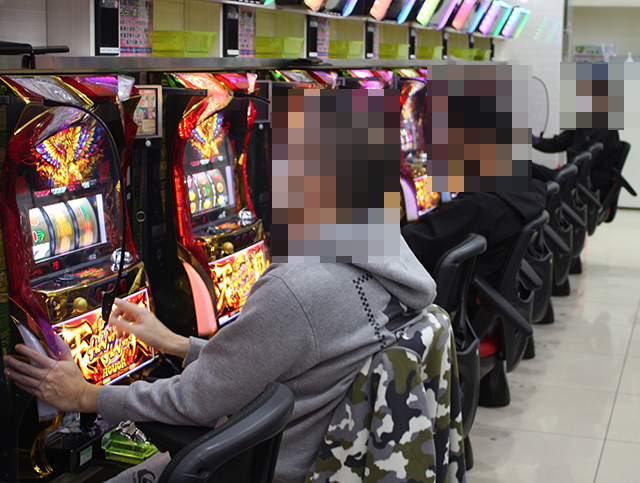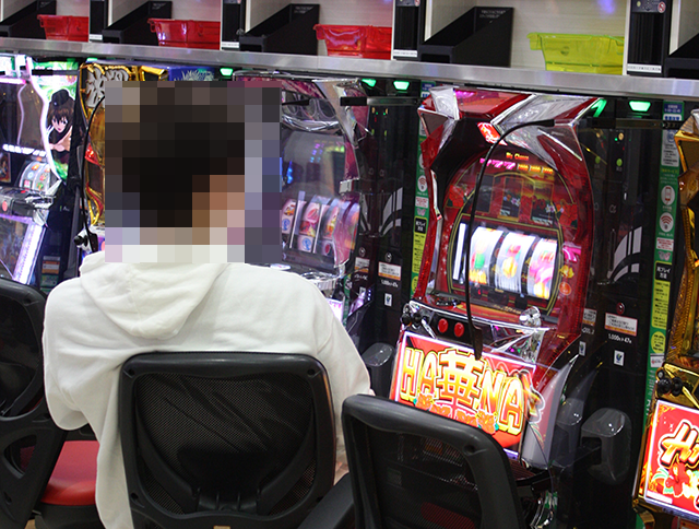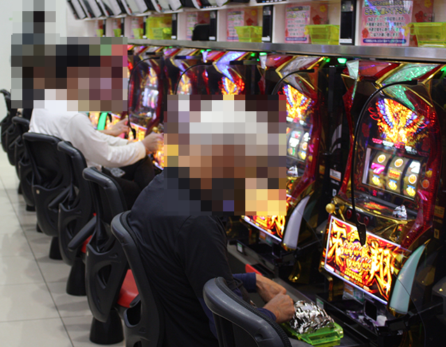 とくに目をひかれたのは、「ハナハナホウオウ~天翔~-30」で遊技を楽しんでいるプレイヤーの姿。