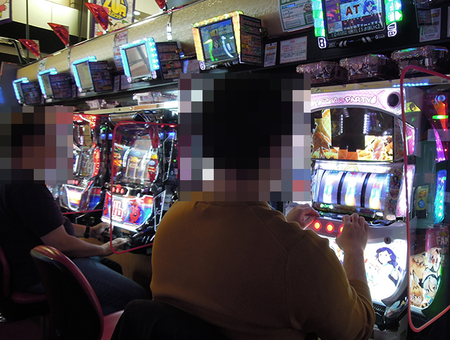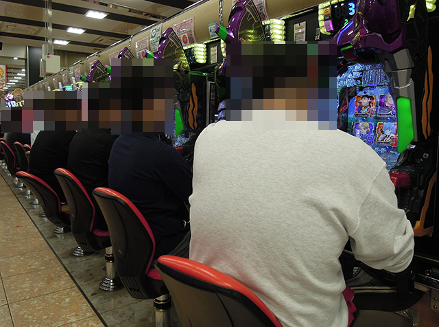 「ハナハナホウオウ~天翔~-30」やジャグラーシリーズでも、プレイヤーたちは笑顔で遊技中! 楽しそうな姿が2台、3台と続いていて、華やかなムードだったな。