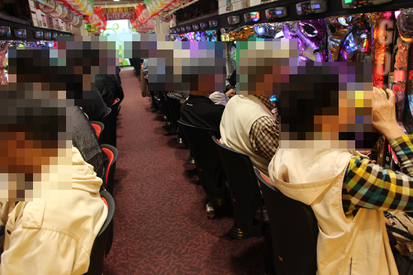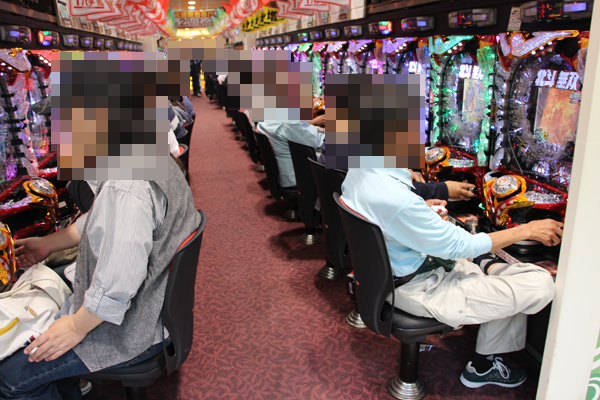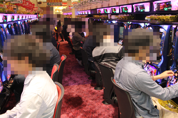 バラエティに富んだ機種構成となっている0.2円パチンコでも、MAXタイプから遊パチまで、幅広いスペックの機種に笑顔を浮かべて遊技を楽しむプレイヤーの姿があった。