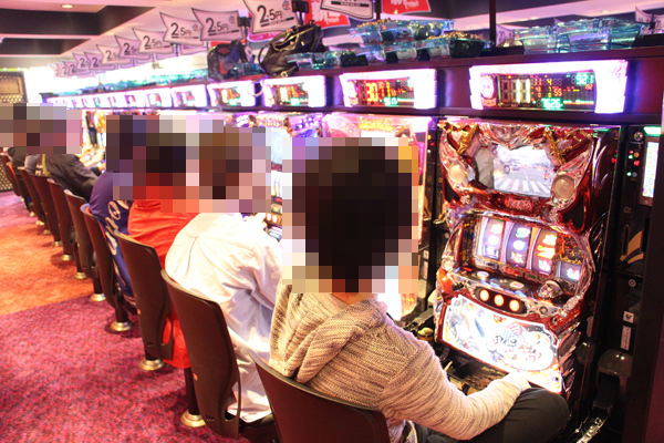 20円パチスロのなかでは、ジャグラーシリーズの盛り上がりがもっとも大きく、納得した表情のプレイヤーもみることができた。