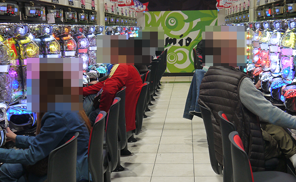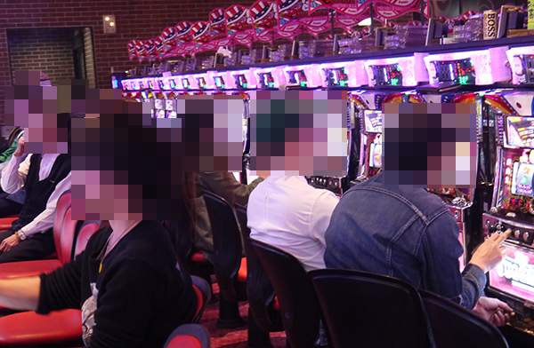 低貸し玉コーナーのなかでは、2.5円パチスロがひときわ大きく活気づいていた。