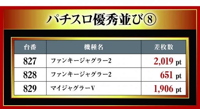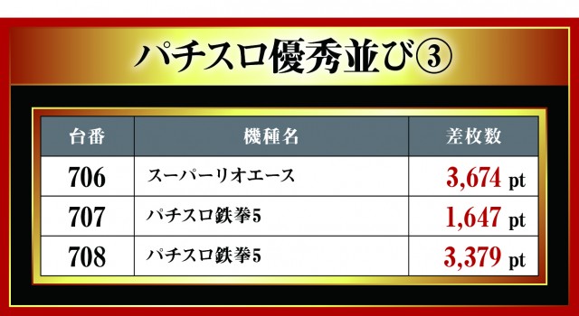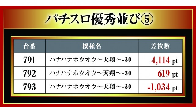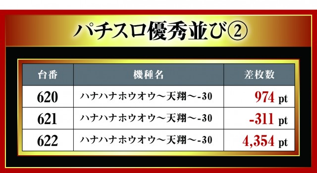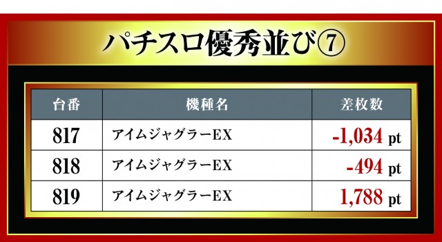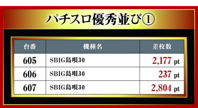 三重北ウイング4店舗を徹底取材する「はねバト!」。10月1日に実施された「金場店」のパチスロコーナーの模様をお伝えしていこう。先月も紹介したが、この金場店は『ハナハナホウオウ~天翔~-30』だけでなく、『アイムジャグラーEX』などのジャグラーコーナーも3台並びが散見されており、他店舗とは差別化されているのが見て取れる。その他、新鋭『SBIG島唄30』、人気AT機『SLOTバジリスク~甲賀忍法帖~絆2』などもあり、多彩なラインナップになった今回の結果となった。