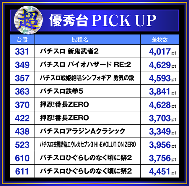 「超」でも選んだ「パチスロひぐらしのなく頃に祭2」は、全台がプラスとなり機種トータルで+10,000ptオーバー。