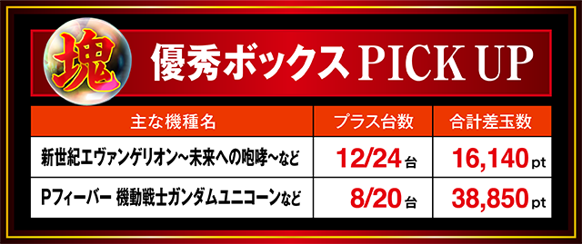 「新世紀エヴァンゲリオン~未来への咆哮~」は、プラスとなった4台のうち3台が+20,000ptを超えた。