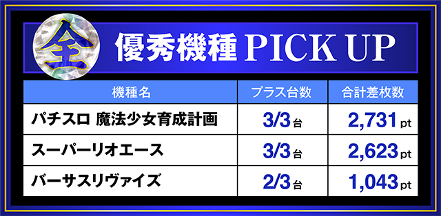 機種トータルで+2,500ptを超えた「パチスロ 魔法少女育成計画」と「スーパーリオエース」!