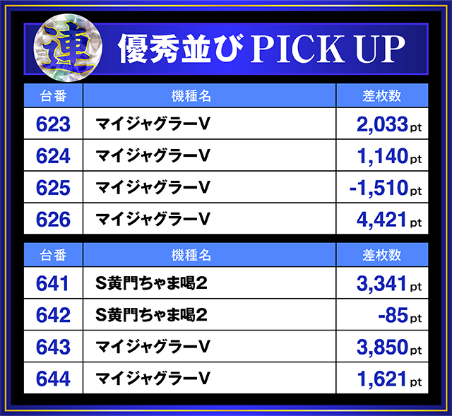 623番台から626番台まででは、+1,000ptオーバーが3台、626番台は+4,000ptを上回った。