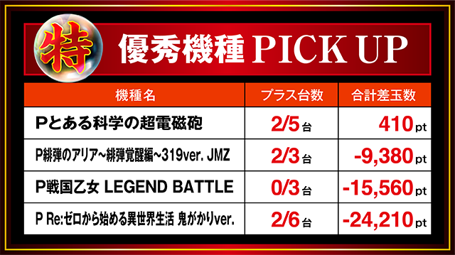 すべての台がプラスと、機種全体が大きな盛り上がりをみせていた。