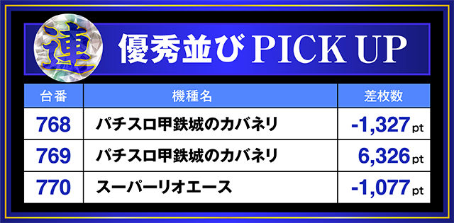 「連」の雰囲気が感じられ、769番台は+6,000ptオーバーと好成績を残した。