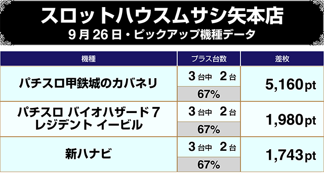 【9/26スロットハウスムサシ矢本店をピックアップ】